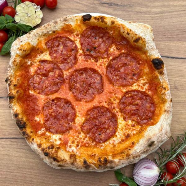paradicsomszósz, szalámi, mozzarella sajt választható pizza tésztával